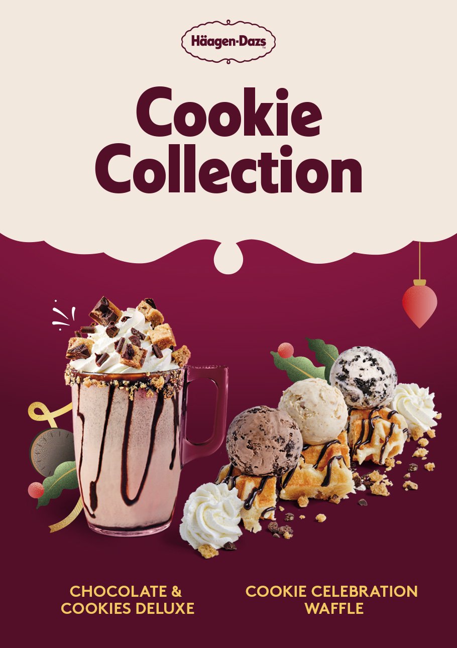 Laissez-vous tenter par notre nouvelle création Chocolate & Cookies Deluxe : un savoureux mélange de lait chaud, de sauce chocolat et de notre iconique crème glacée Cookies & Cacao, le tout sublimé par une généreuse chantilly, des copeaux de chocolat et des éclats de cookies croustillants. Notre version irrésistiblement gourmande du chocolat chaud classique.